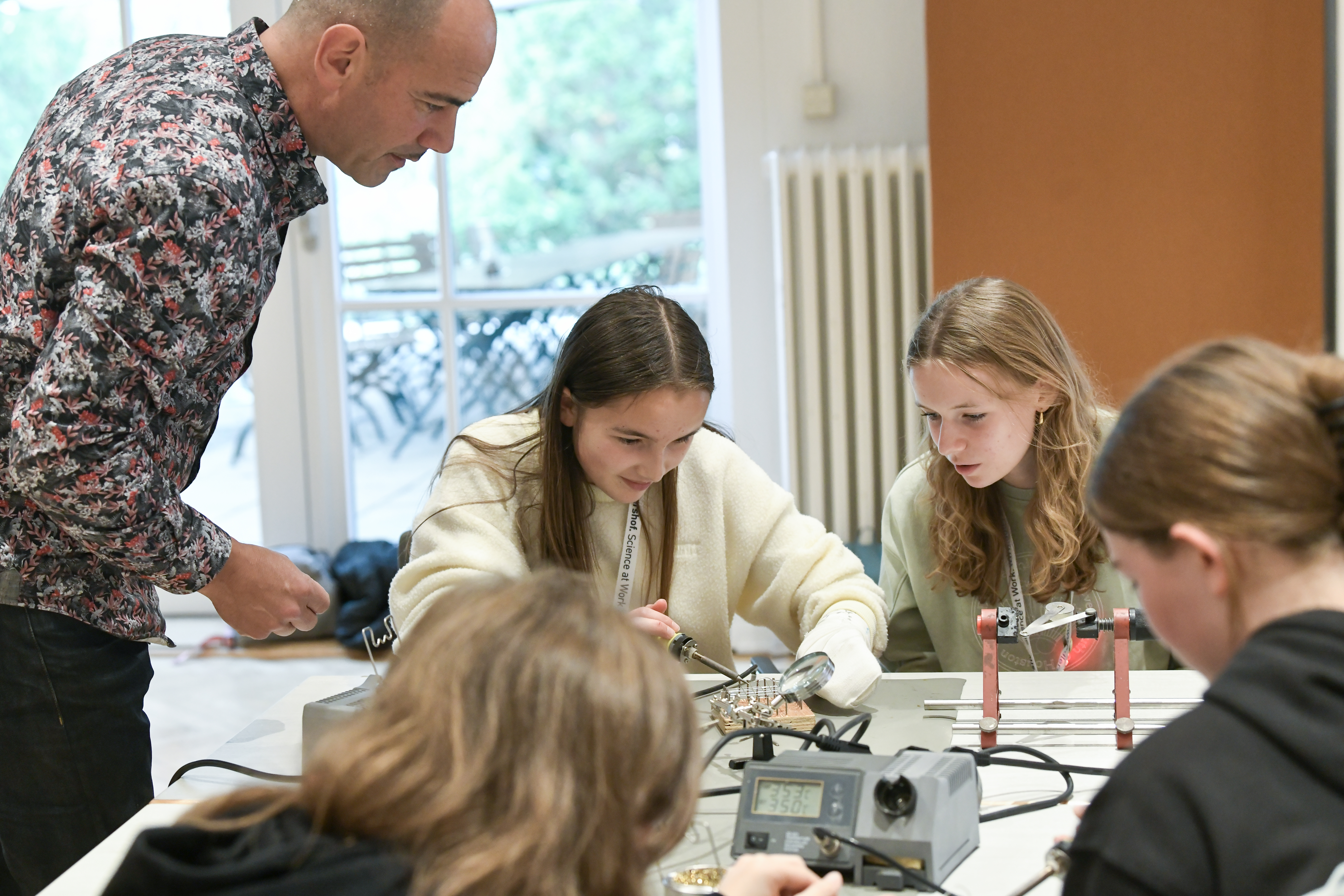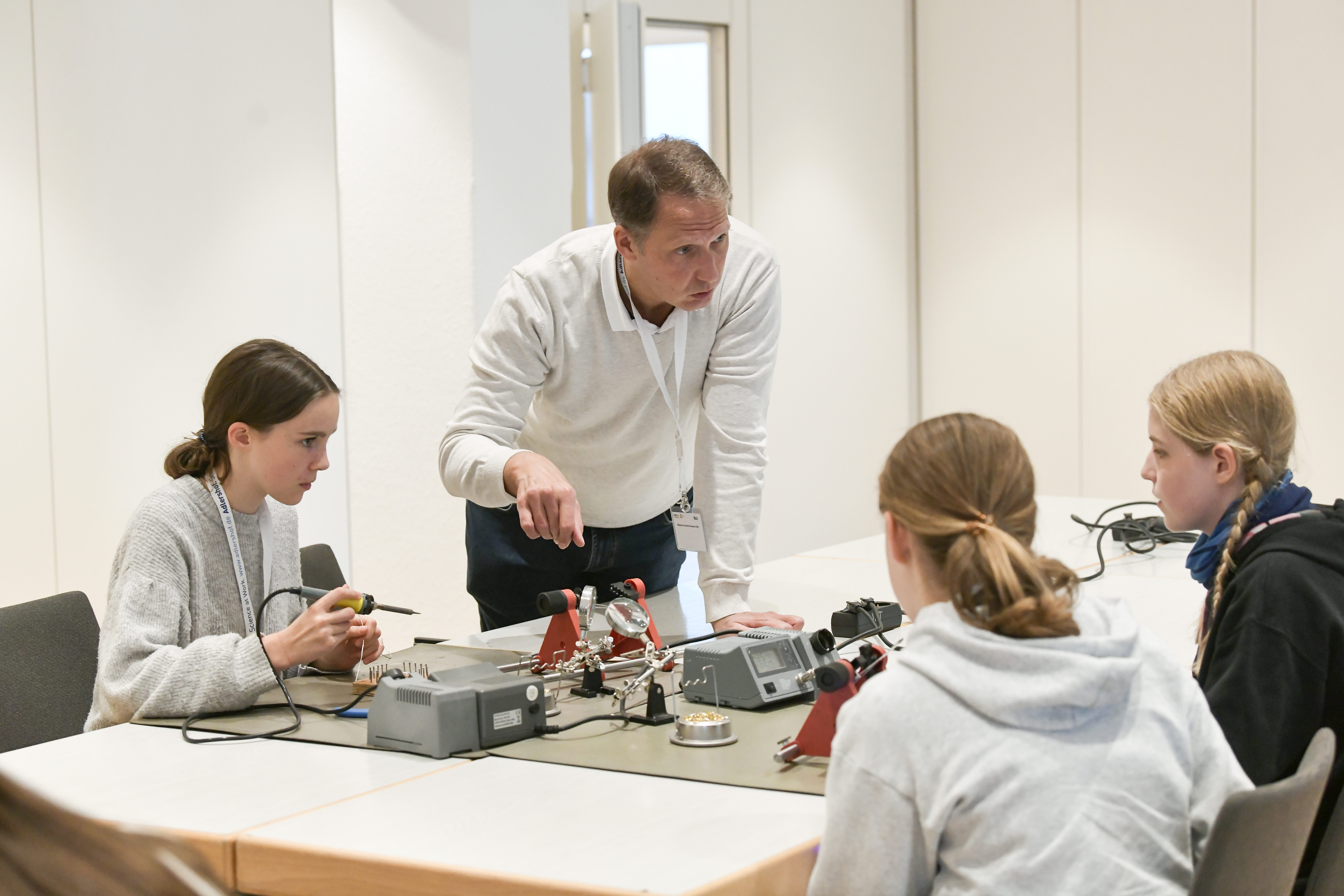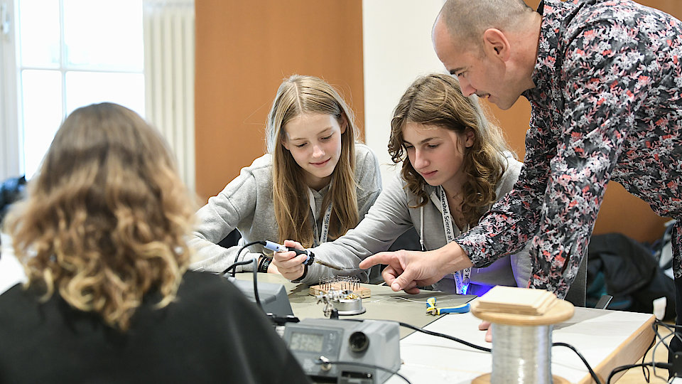 Löten macht richtig Spaß und ist super für kleine Technikerinnen! Wenn ihr einen Elektronikbausatz lötet, verbindet ihr kleine Teile, damit sie zusammen funktionieren. Zuerst steckt ihr die Bauteile, wie Widerstände und LEDs, auf die richtige Stelle der Platine. Dann benutzt ihr einen Lötkolben, um das Metall am Ende der Bauteile zu schmelzen und festzumachen. Mit etwas Übung könnt ihr tolle elektronische Geräte bauen.