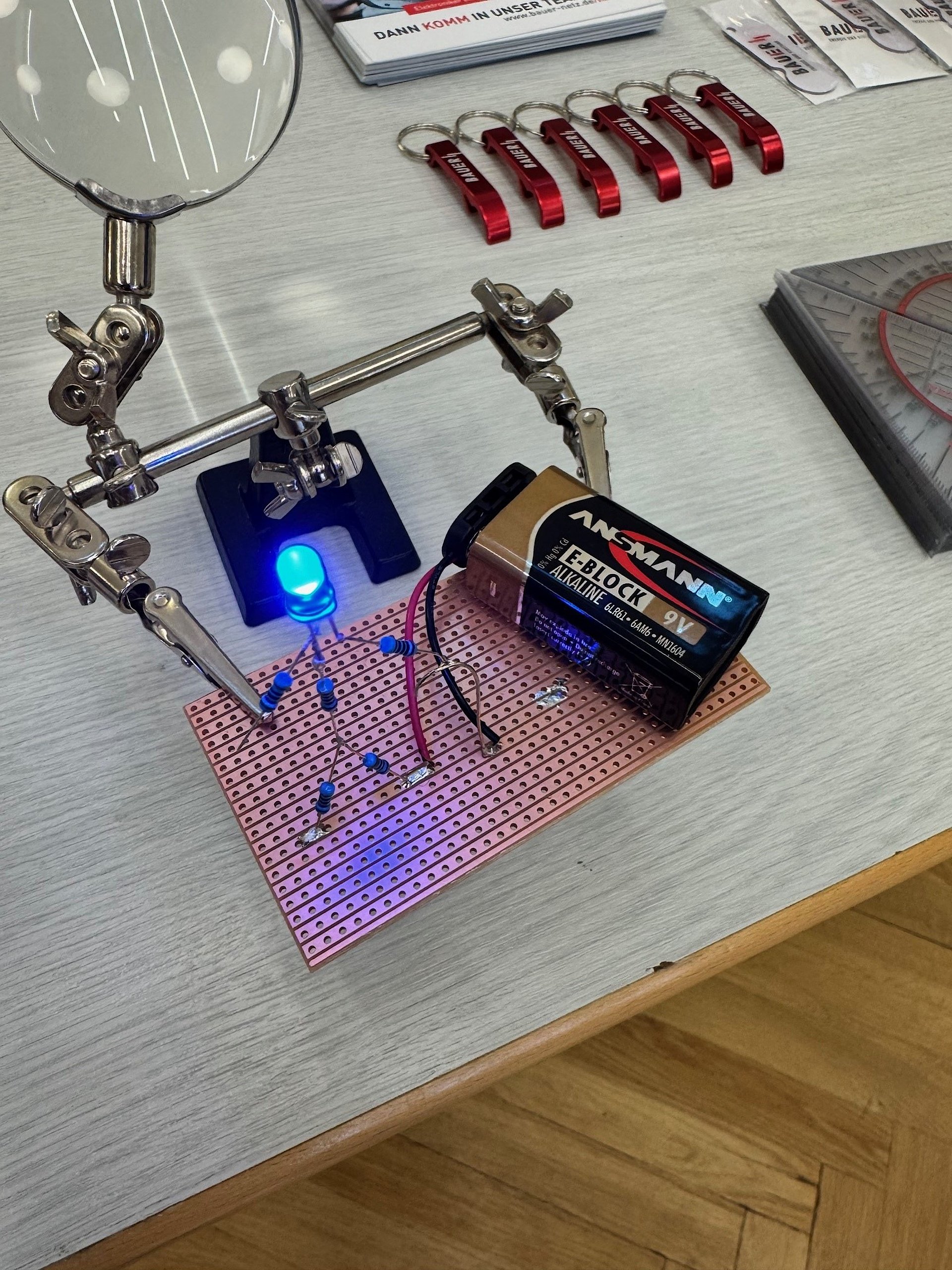 Noch unentschlossen in der Berufswahl? Kein Problem. Manche Dinge muss man ausprobieren, bevor man weiß, ob’s passt. Elektro- & Informationstechnik sind die Adern und Nervenbahnen von Gebäuden und gehören in die Hände von Spezialisten. Aber was machen diese Spezialisten überhaupt? Das gesamte Spektrum der Elektrotechnik ist die Kernkompetenz von BAUER. Wir geben euch einen kleinen Einblick und zeigen Euch den Umgang mit elektronischen Bauteilen und mit verschiedenen Werkzeugen wie dem Lötkolben.